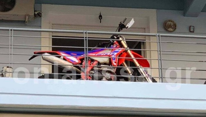 Στο μπαλκόνι του σπιτιού του πάρκαρε τη μοτοσικλέτα του ένας κάτοικος της Λάρισας.