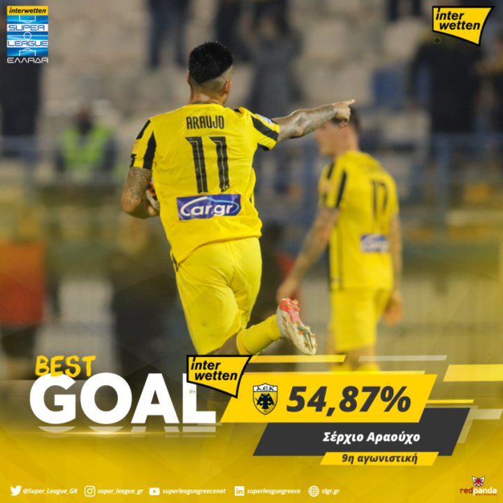 Το γκολ που πέτυχε ο Σέρχιο Αραούχο ψηφίστηκε ως το καλύτερο της 9ης αγωνιστικής με ποσοστό 54,87%, ενώ στην πέμπτη θέση βρέθηκε το γκολ του Ντουρμισάι κόντρα στον Ατρόμητο.