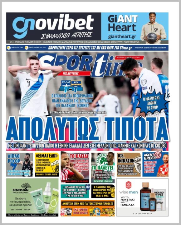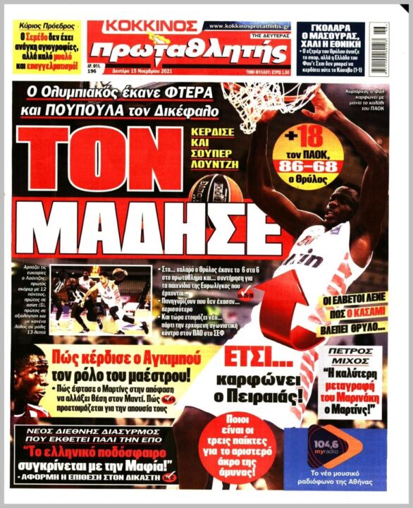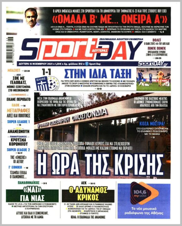 Τα αθλητικά πρωτοσέλιδα της ημέρας (15/11)