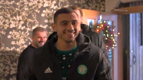 Ο Αντζι Ποστέκογλου και οι παίκτες της Σέλτικ πρωταγωνιστούν σε διαφημιστικό κλιπ για τα Χριστούγεννα σε χριστουγεννιάτικη διαφήμιση στην Σκωτία.