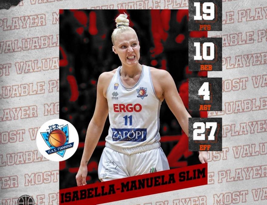 Ιζαμπέλα Σλιμ (ΠΑΣ Γιάννινα): 19 πόντοι, 10 ριμπάουντ