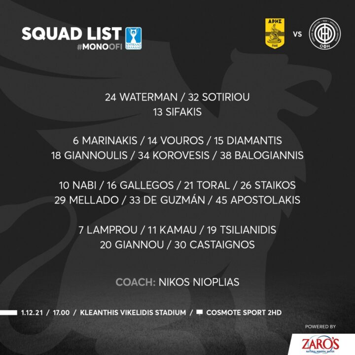 Εκτός αποστολής, πέραν του Επασί, έμεινε και ο Μάικ Φαν Ντάινεν με τον Νίκο Νιόπλια να παίρνει στην αποστολή όλους τους διαθέσιμους ποδοσφαιριστές του ΟΦΗ.