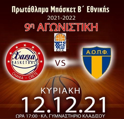 Ο ΑΟΚ Χανιά υποδέχεται το Παλαιό Φάληρο στο κλειστό του Κλαδισού, με στόχο να επιστρέψει στις νίκες και στην προσπάθεια του, χρειάζεται την στήριξη του φίλαθλου κοινού των Χανίων και για αυτό τον λόγο καλεί τον κόσμο να δώσει δυναμικό “παρών” στο παιχνίδι της Κυριακής (12/12).