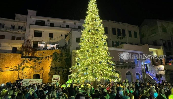 Φαντασμαγορικό το άναμμα του χριστουγεννιάτικου δένδρου του Δήμου Χανίων | pics + video