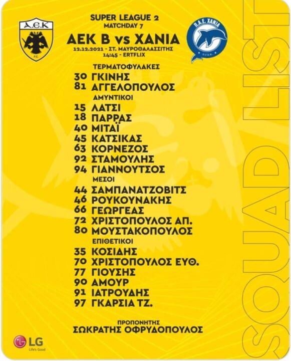 Ο Σωκράτης Οφρυδόπουλος ανακοίνωσε τους ποδοσφαιριστές που θα έχει στην διάθεση του για το παιχνίδι με τα Χανιά την Κυριακή (12/12) στις 14:45.