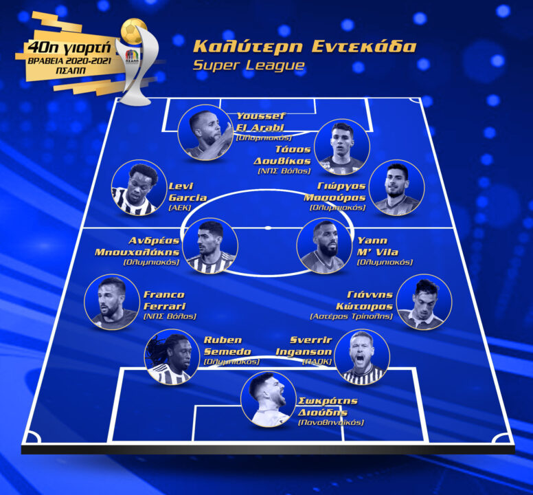 Καλύτερη 11άδα Super League: Διούδης, Κώτσιρας, Σεμέδο, Ίνγκασον, Φεράρι, Εμβιλά, Μπουχαλάκης, Μασούρας, Λιβάι Γκαρσία, Ελ Αραμπί και Δουβίκας