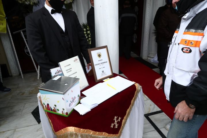 Συγγενείς και φίλοι είπαν το τελευταίο ”αντίο” στο θρυλικό τερματοφύλακα της ΑΕΚ που αγάπησε όσο κανείς την ομάδα της ΑΕΚ και αγαπήθηκε εξίσου από τους φιλάθλους όλων των ομάδων.