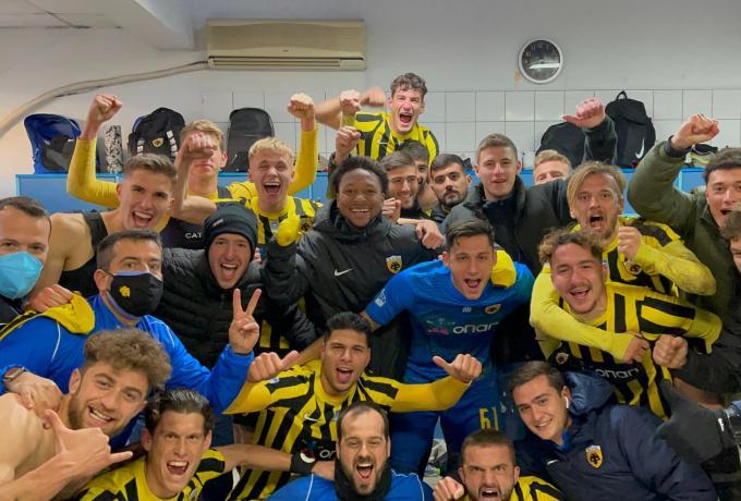 Η ΑΕΚ Β’ επικράτησε με 2-1 του Λεβαδειακού στο «Σταύρος Μαυροθαλασσίτης» και τον έπιασε στην κορυφή της βαθμολογίας με 24 βαθμούς. Μετά το τέλος του ματς στα κιτρινόμαυρα αποδυτήρια επικρατούσε κλίμα ευφορίας για την έβδομη νίκη σε έντεκα αγώνες, όπως φαίνεται και σε σχετικό βίντεο που ανέβασε η Ένωση στα social media..