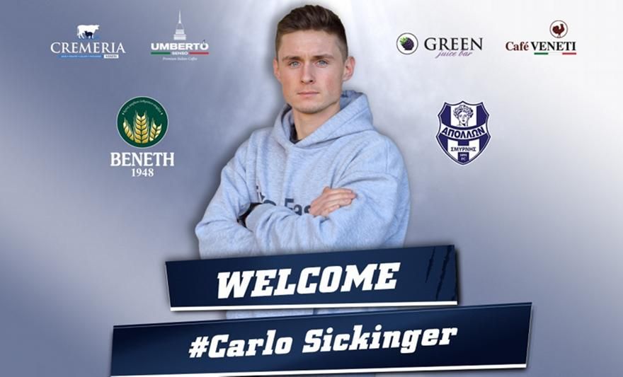 Η ΠΑΕ Απόλλων Σμύρνης ανακοινώνει την απόκτηση του ποδοσφαιριστή Carlo Sickinger. Γεννημένος στις 29 Ιουλίου 1997, στη Καρλσρούη αγωνίζεται ως αμυντικός μέσος. Ξεκίνησε από τα τμήματα υποδομής της Σαντχάουζεν και της Καϊζερσλάουτερν. Συνέχισε τον Ιούλιο του 2016 στην Β’ ομάδα της Καϊζερσλάουτερν όπου είχε 63 συμμετοχές και έξι γκολ. Στην πρώτη ομάδα προωθήθηκε τον Ιούλιο του 2018. Έως το καλοκαίρι του 2021 συμπλήρωσε 94 συμμετοχές και πέτυχε 3 γκολ. Επόμενος σταθμός στην καριέρα του ήταν η Σαντχάουζεν με την οποία έχει επτά συμμετοχές.