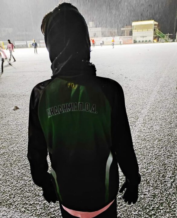 Προπόνηση στο… χιόνι για τον ΠΟΑ, που δημοσίευσε φωτογραφία από το γήπεδο του Ατσαλένιου, που έχει ντυθεί στα “λευκά”.