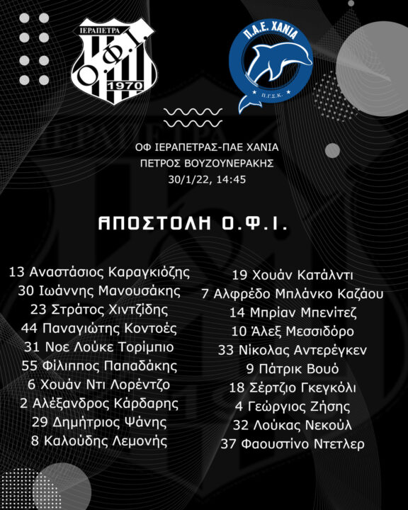 Με μοναδικό απόντα τον Μαρτίν Χιμένεθ θα υποδεχτεί ο ΟΦΙ τα Χανιά στο Βουζουνεράκειο στο πλαίσιο της 16ης αγωνιστικής για τον Νότιο όμιλο της Σούπερ Λιγκ 2.