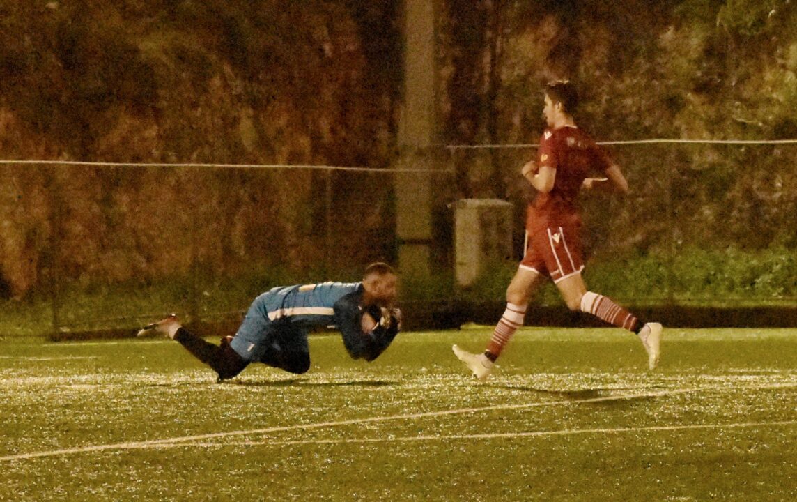 Εδώ μία δύσκολη στιγμή για τους γηπεδούχους με τον τερματοφύλακα της ομάδας να ενεργεί σωστά και να καθαρίζει την φάση, με τον Σοντσόλι να βρίσκεται στο έδαφος χωρίς όμως να συγκινεί τον Τρίγκα όπως θα δείτε στην επόμενη φώτο.