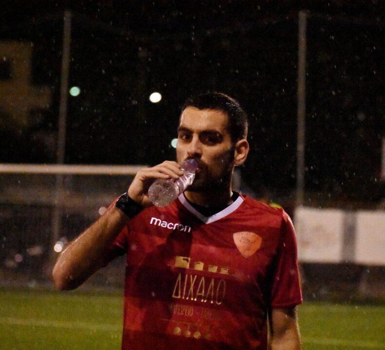 Παρά την βροχή και το αρκετό νερό που έπεσε πάνω στους παίκτες εδώ ο παίκτης του Ίκαρου βρίσκει μία στιγμή να δροσιστεί.