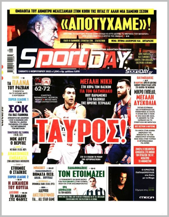 Τα αθλητικά πρωτοσέλιδα της ημέρας(05/02)