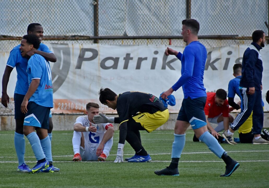 Μετά το σφύριγμα του διαιτητή οι ποδοσφαιριστές της Αναγέννησης πανηγυρίζουν τη νίκη τους, με τον αρχηγό του Άρη Σούδας Μιχάλη Μπακογιάννη, αλλά και τον Ροκάκη να είναι πεσμένοι στο χορτάρι, έχοντας αντιληφθεί πως πιθανότατα εξανεμίστηκαν οι ελπίδες τους για παραμονή, με τους παίκτες της Αναγέννησης να τους πλησιάζουν και να τους εμψυχώνουν…