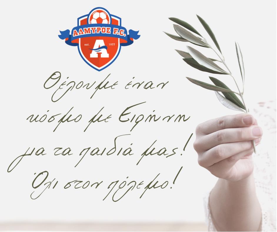 Το δικό του μήνυμα κατά του πολέμου έστειλε ο Αλμυρός, που με δημοσίευση του έδωσε το στίγμα του, με αφορμή τα θλιβερά γεγονότα που συμβαίνουν τις τελευταίες μέρες στην Ουκρανία.