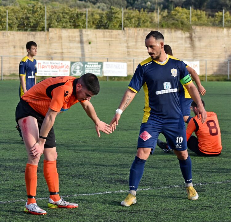 Ο αρχηγός Μανουσάκης δίνει το χέρι στον Τσακωνάκη μετά το τέλος του ματς