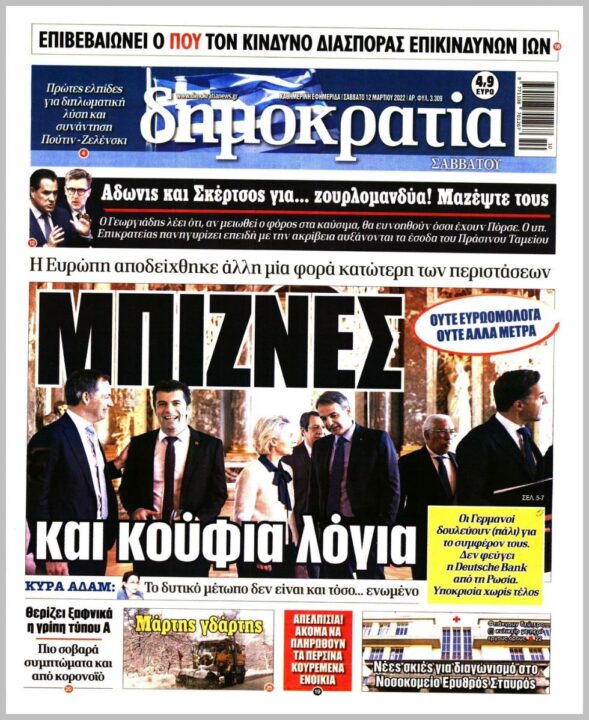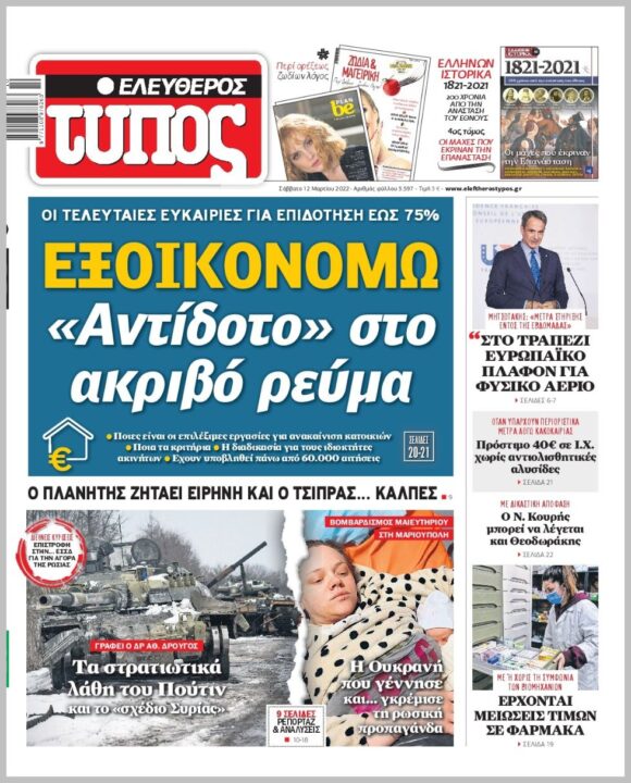 Τα πρωτοσέλιδα των πολιτικών εφημερίδων του Σαββοτοκύριακου (12/3)