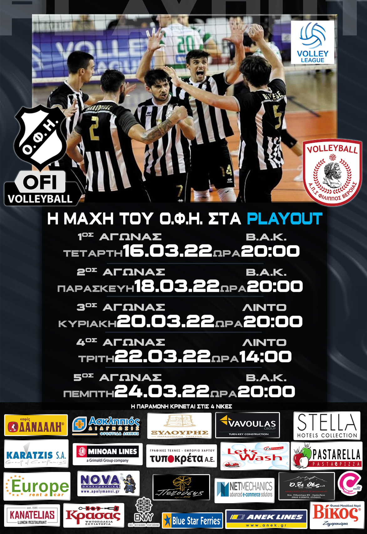 Η ομάδα μας, ξεκινάει τα μπαράζ για την παραμονή της για 3η συνεχόμενη χρονιά στα σαλόνια του Ελληνικού βόλει.