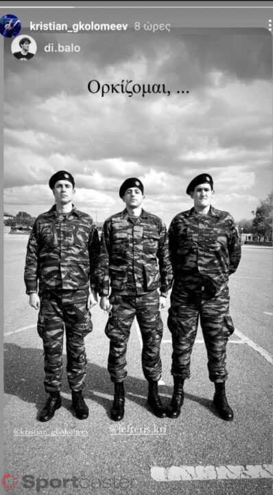 Ο Έλληνας πρωταθλητής της κολύμβησης που πριν από λίγους μήνες έγινε και πατέρας παρουσιάστηκε πριν λίγες βδομάδες στο Ρέθυμνο για να υπηρετήσει την πατρίδα και χθες ορκίστηκε φαντάρος.
