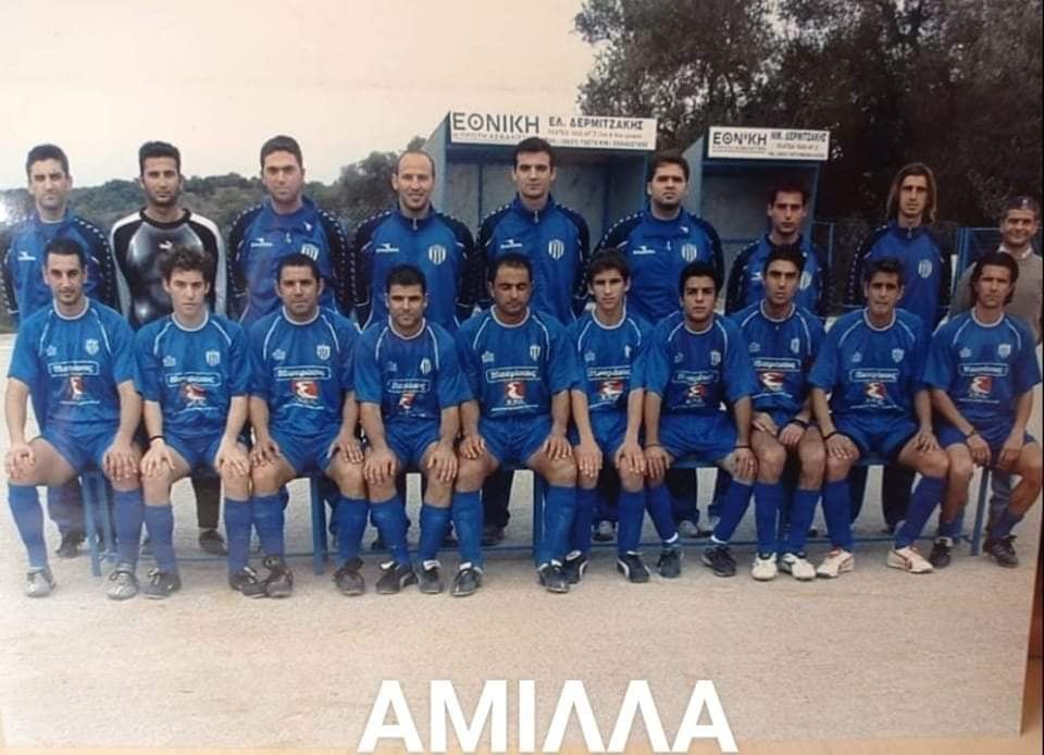 Η πρώτη φωτογραφία είναι από την σεζόν 1997-98, χρονιά κατά την οποία η Αμιλλα είχε κατακτήσει την άνοδο στην Α’ κατηγορία Χανίων