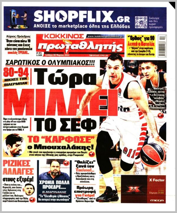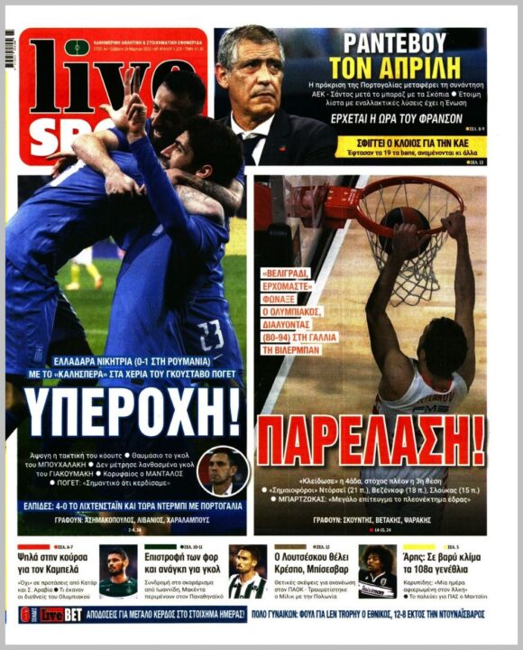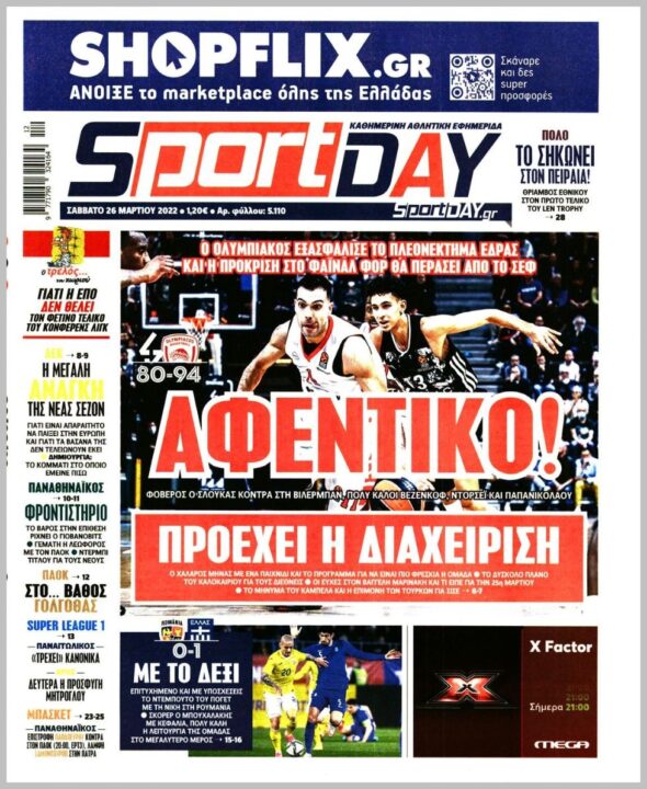 Τα αθλητικά πρωτοσέλιδα του Σαββάτου (26/3)