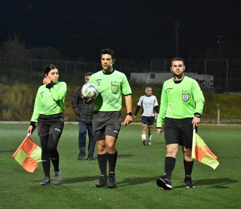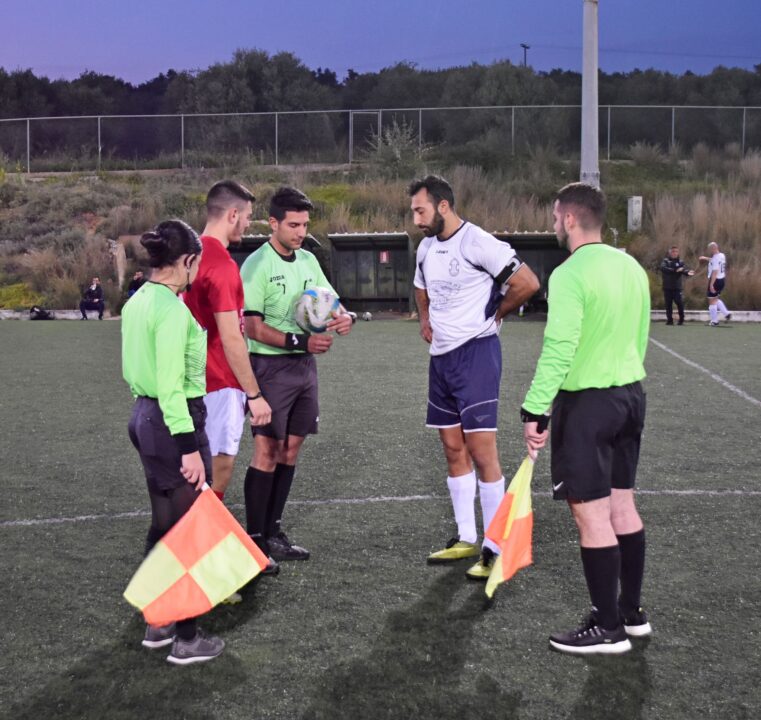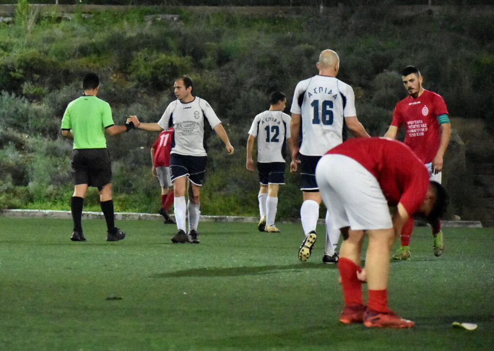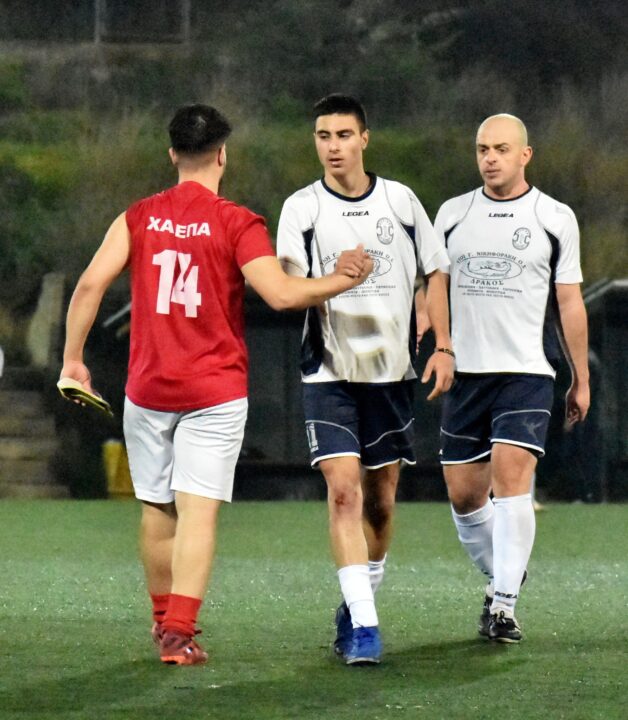 Σε μια πολύ όμορφη στιγμή στο γήπεδο της Μοναχής Ελιάς με τους Κώστα Σαραντολάκη και Νίκο Παλαθούρα σε μια δυνατή χειραψία.