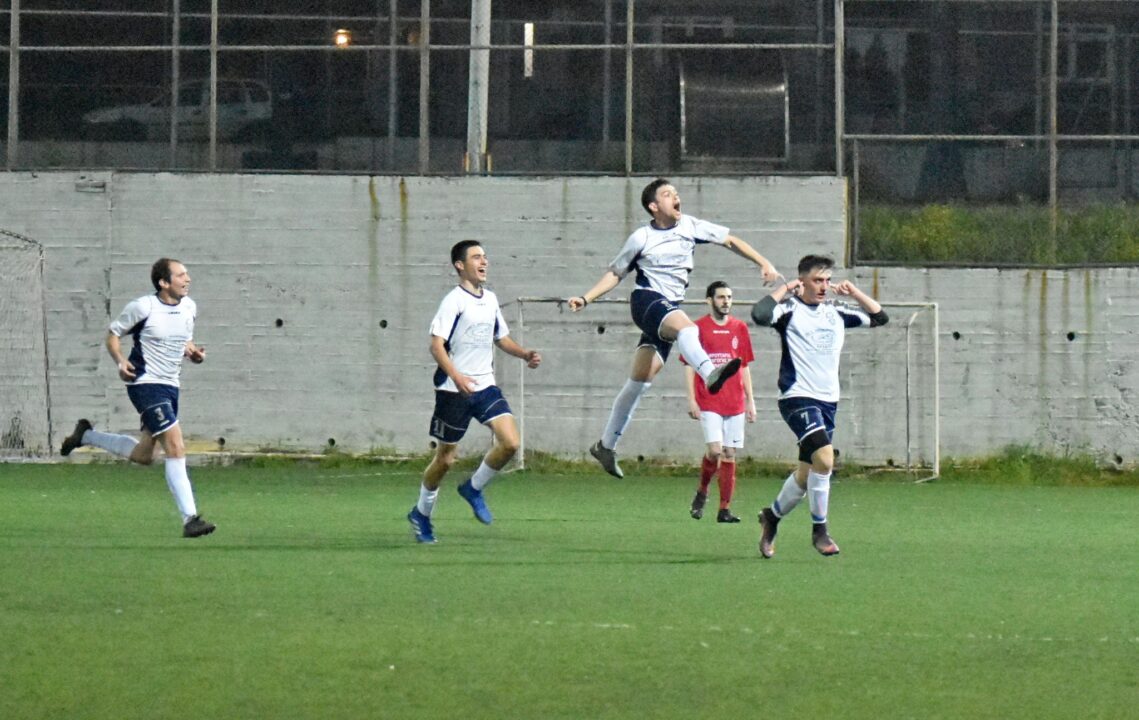 Την στιγμή που οι συμπαίκτες του Νίκου Παλαθούρα τον συγχαίρουν για την επίτευξη του 4ου τέρματος της ομάδας τους.