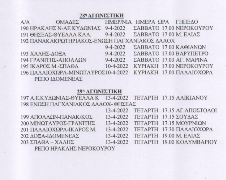 Live: Οι αγώνες των Χανίων, Γ’ Εθνικής και Α’ ΕΠΣΧ