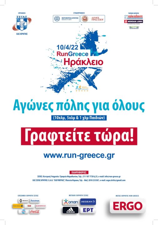 Την ερχόμενη Κυριακή 10 Απριλίου θα διεξαχθεί στο Ηράκλειο ο αγώνας δρόμου Run Greece Ηράκλειο που διοργανώνει ο ΣΕΓΑΣ με τον ΕΑΣ ΣΕΓΑΣ Κρήτης υπό την αιγίδα της Περιφέρειας Κρήτης και του Δήμου Ηρακελίου.