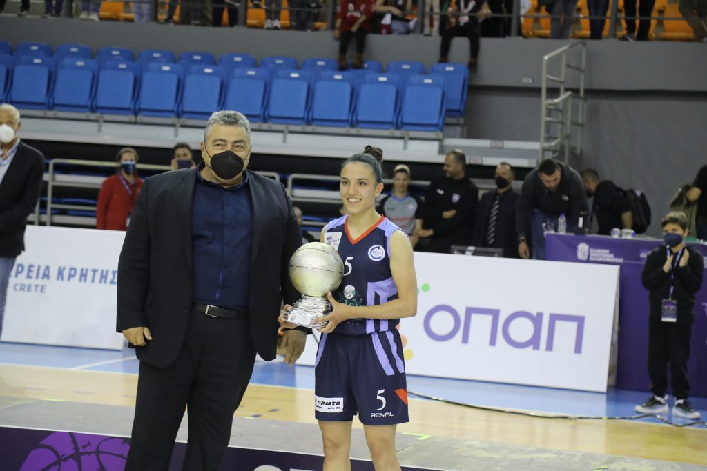 Η Πλουφ είχε 16 πόντους, 18 ριμπάουντ, 4 ασίστ, 2 κλεψίματα και 1 τάπα σε 35’50” που αγωνίστηκε. Την απονομή έκανε ο Χρήστος Βασιλειάδης, μέλος του ΔΣ της ΕΟΚ και Υπεύθυνος του μπάσκετ γυναικών.
