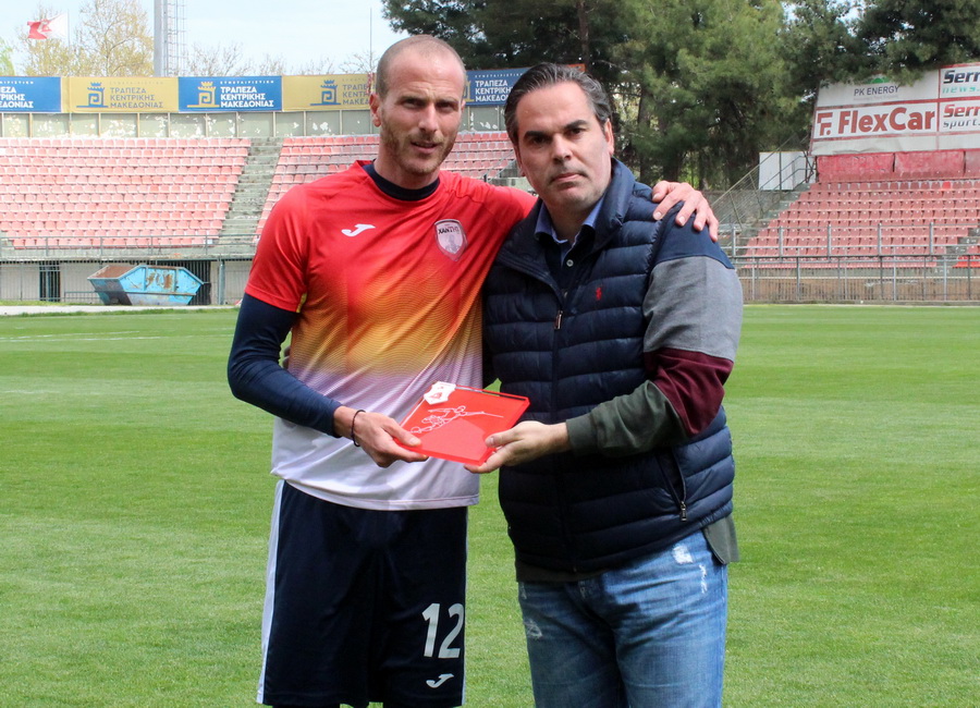 Ο πρόεδρος Τάσος Καζίας έδωσε τιμητική πλακέτα στον ποδοσφαιριστή της ομάδας, Τάσο Παπάζογλου για την προσφορά του στο ελληνικό ποδόσφαιρο και τον Πανσερραϊκό.