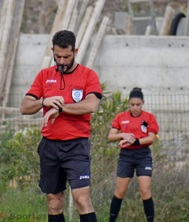 Ο ρέφερι της αναμέτρησης, Γιαννουλάκης και η βοηθός, Ξενάκη συγχρονίζουν τα ρολόγια τους.