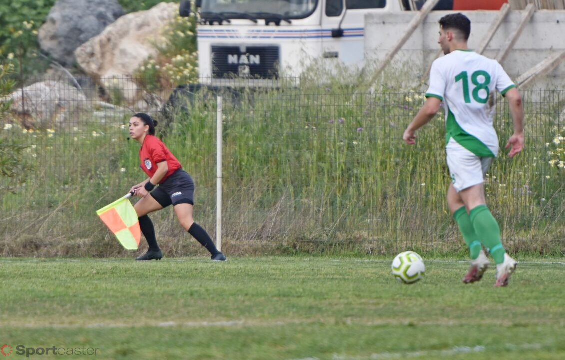 Η πρώτη κίτρινη κάρτα από τον διαιτητή Γιαννουλάκη για τον νεαρό σέντερ φορ της Παλαιόχωρας, Κουφάκη.