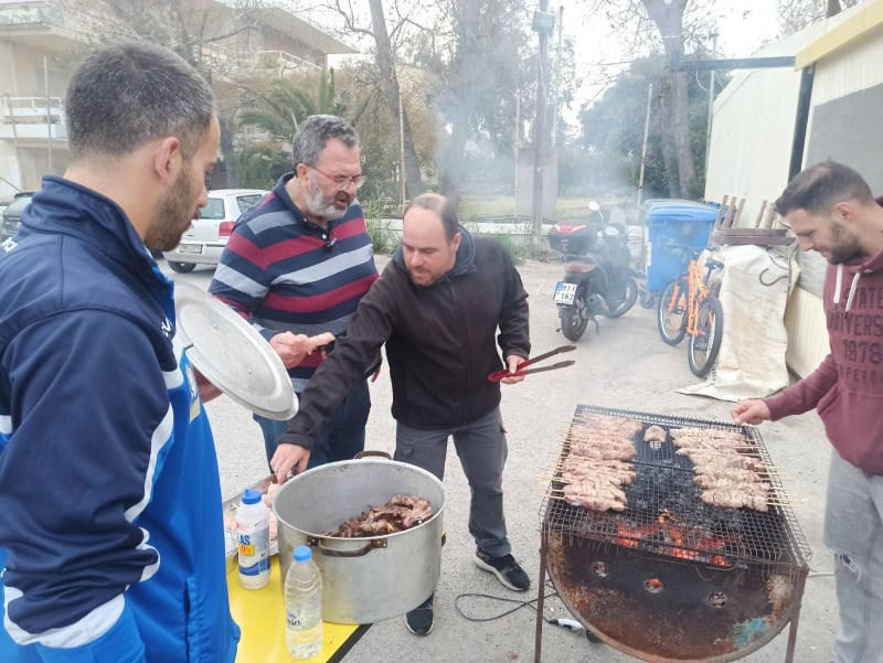Το τραπέζι ήταν πλούσιο από φαγητό καθώς η ψησταριά δεν έσβησε, με τον πρόεδρο, Παύλο Τρουλάκη να επιμελείται της κατάστασης.