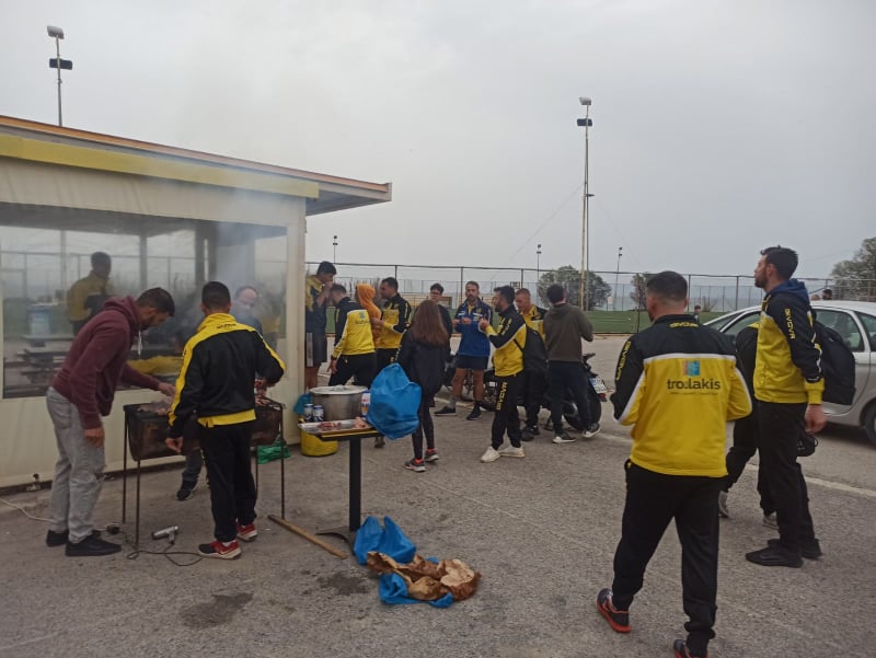 Το τραπέζι ήταν πλούσιο από φαγητό καθώς η ψησταριά δεν έσβησε, με τον πρόεδρο, Παύλο Τρουλάκη να επιμελείται της κατάστασης.