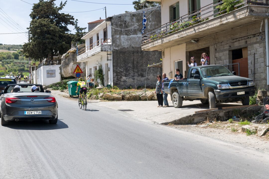 Πιάνοντας τη συνεχόμενη κατηφόρα για τα τελευταία 10 χιλιόμετρα, στο δρόμο προς τα Χανιά, ο Γκέιτ, άρχισε, λογικά, να ανοίγει τη διαφορά, όσο το πελοτόν συνέχισε να ανηφοριζει, ενώ στο γκρουπ καταδίωξης έμειναν τέσσερις ποδηλάτες, ο Μπρόγκε, ο Μιλτιάδης, ο Βίρτγκεν της Bingoal και ο Κούμπις της Banska Bystrica.