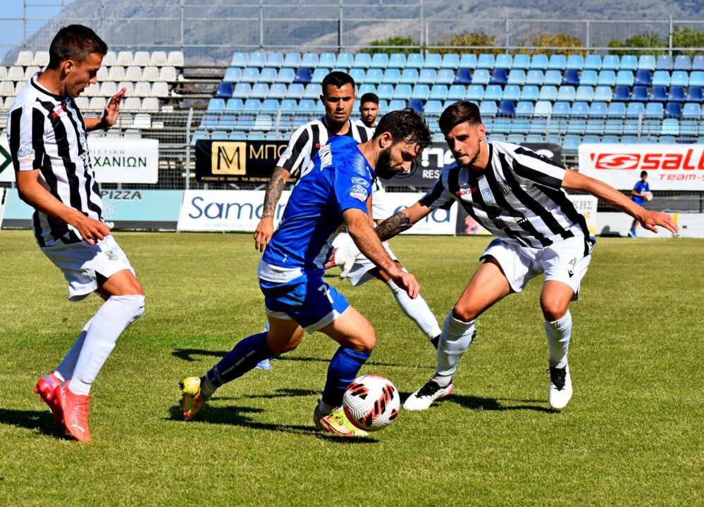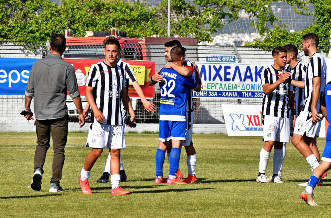 Εφτά λεπτά πριν συμπληρωθούν τα 90 λεπτά ο Μπαϊροβιτς δίνει την σκυτάλη (σερβίροντας) στον Βασιλόγιαννη που με σουτ έγραψε το 2-0 για την ομάδα των Χανίων.