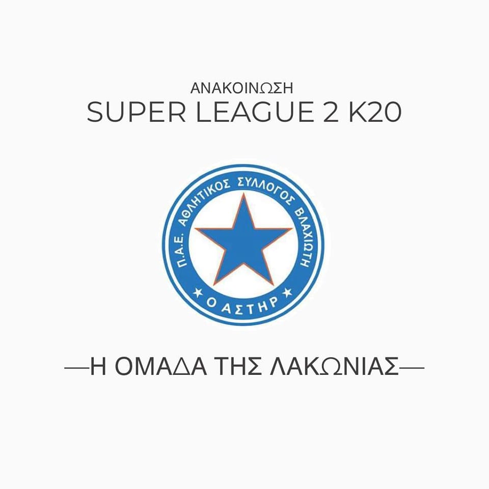 Με ανακοίνωση του ο Αστέρας Βλαχιώτη γνωστοποιεί ότι δεν θα παραστεί στον αγώνα ενάντια στην Καλαμάτα για το πρωτάθλημα της Σούπερ Λιγκ 2 Κ20.