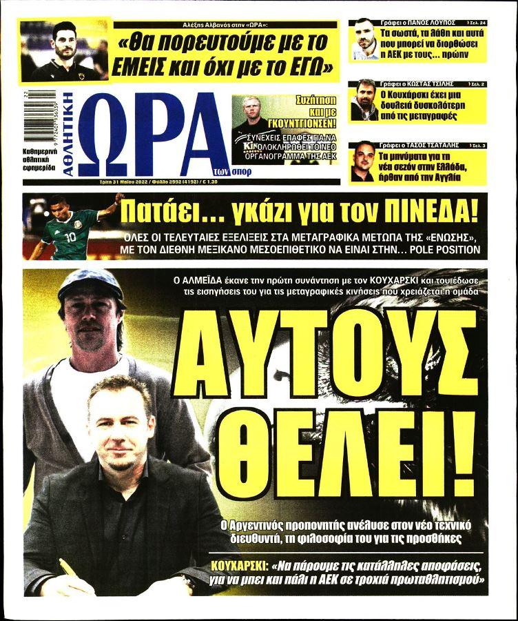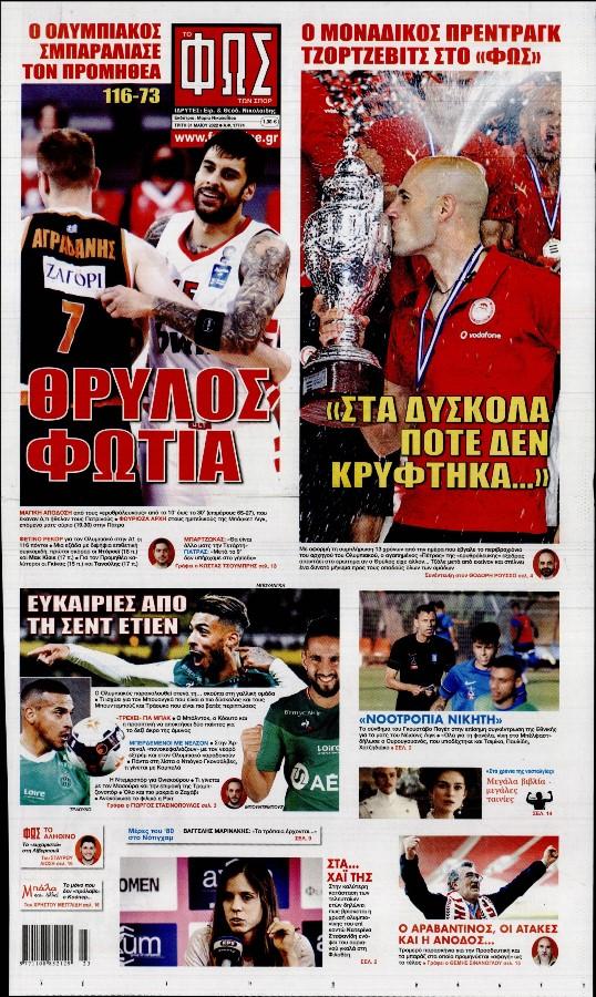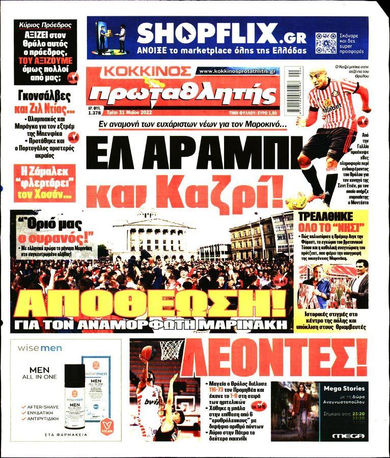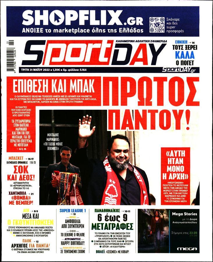 Τα αθλητικά πρωτοσέλιδα της ημέρας(31/5)