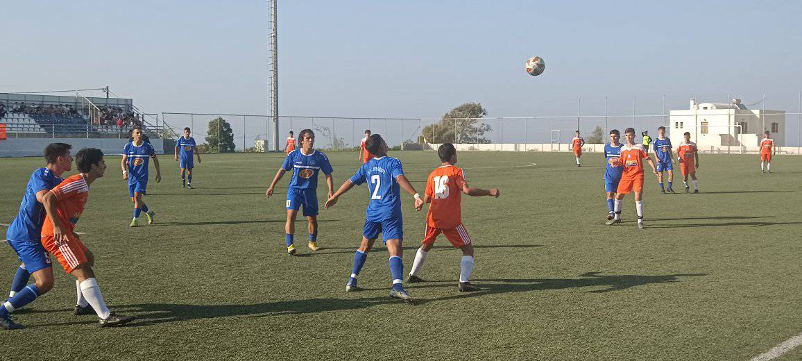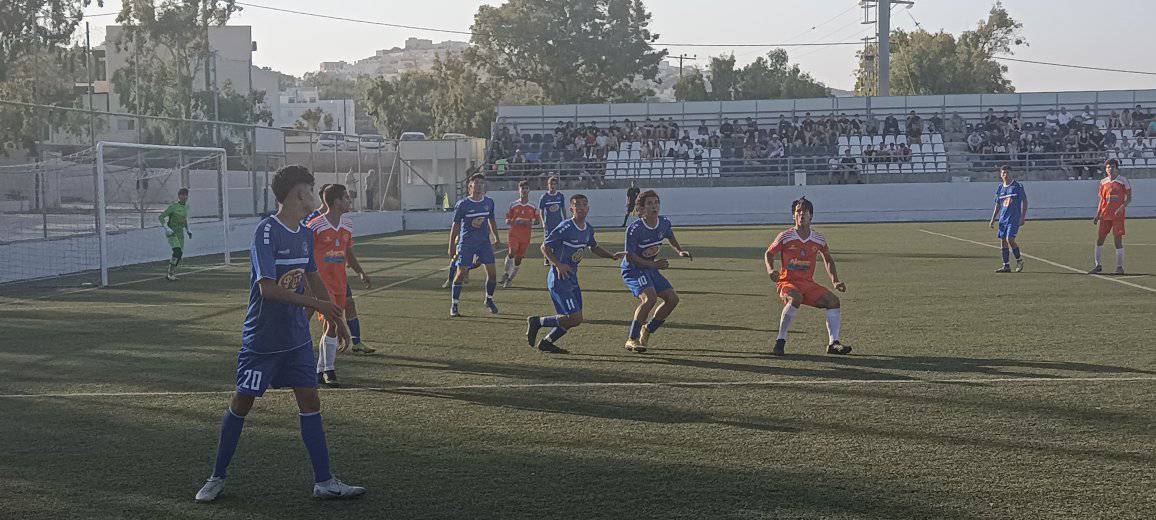 Το ματς ξεκίνησε με τους καλύτερους οιωνούς για την ομάδα Κ17 των Κυκλάδων καθώς μόλις στο 6ο λεπτό κατάφερε να προηγηθεί με 1-0 στο σκορ χάρη στην απευθείας εκτέλεση κόρνερ του Ορφανού.
