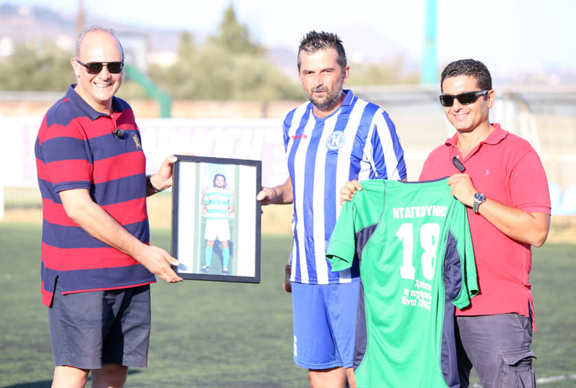 Ο Γιάννης Σπυριδάκης με τον πρώην πρόεδρο του Μινωταύρου, Γιώργο Βεργάκη και τη ”σημαία” του συλλόγου, Χρήστο Νταγκουνάκη, ο οποίος θα αναλάβει έξω διοικητικό ρόλο.