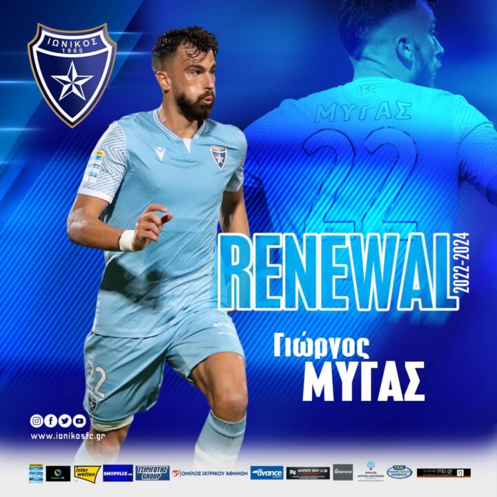 Η ΠΑΕ Ιωνικός ανακοινώνει την επέκταση του συμβολαίου του Γιώργου Μύγα για τα επόμενα δύο χρόνια.