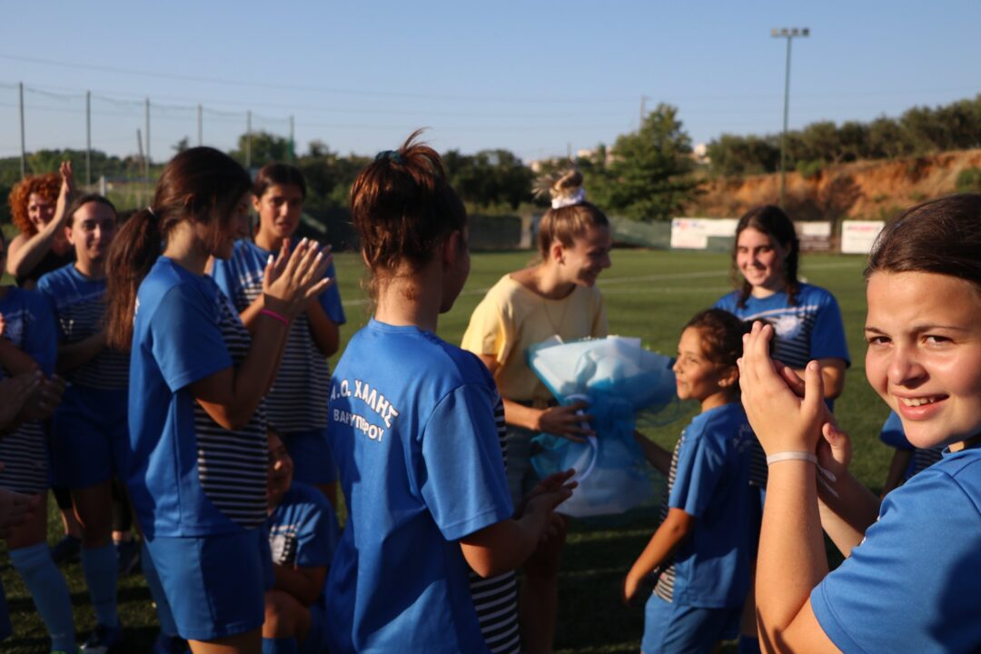 Η ταλαντούχα αθλήτρια που ζει το όνειρο της στην Αγγλία και την Premier League βρέθηκε στο γήπεδο του Βαρυπέτρου, όπου παρακολούθησε από κοντά την προπόνηση της γυναικείας ομάδας του ΑΟ Χάλη.