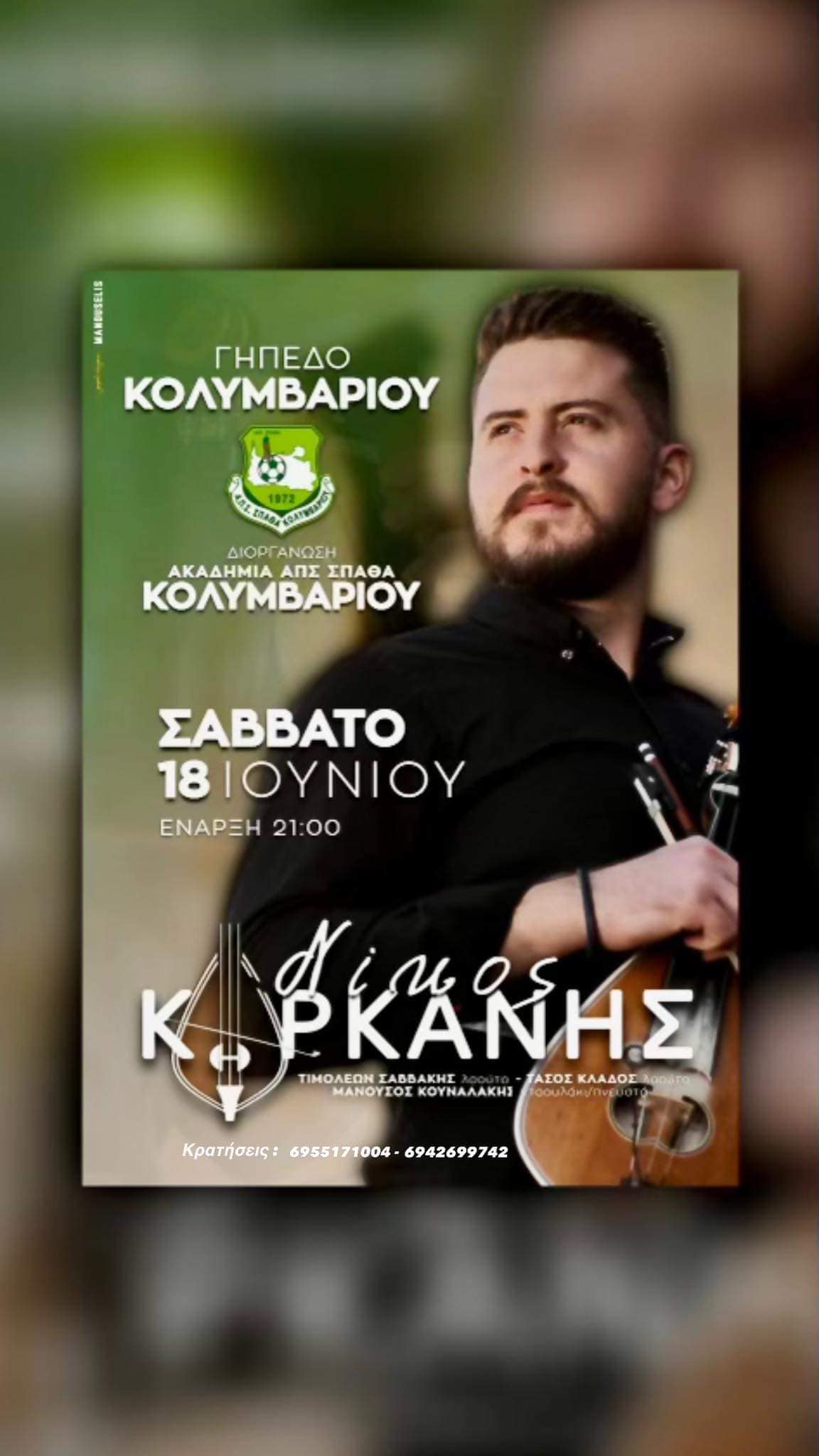 Η Ακαδημία ΑΠΣ Σπάθας Κολυμβαρίου σας προσκαλεί στο γλέντι που διοργανώνει το Σάββατο 18 Ιουνίου στο γήπεδο Κολυμβαρίου.