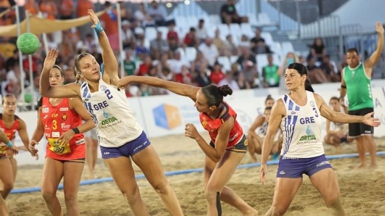 Η εθνική ομάδα μπιτς χάντμπολ γυναικών ηττήθηκε από την Ισπανία με 2-0 σετ στον ημιτελικό του παγκοσμίου πρωταθλήματος στο Ηράκλειο, με την Ολλανδία για το χάλκινο.