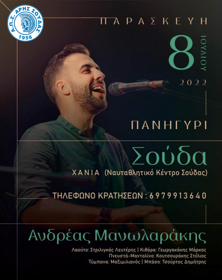 Την Παρασκευή(08/07) με Μανωλαράκη η εκδήλωση του Άρη Σούδας