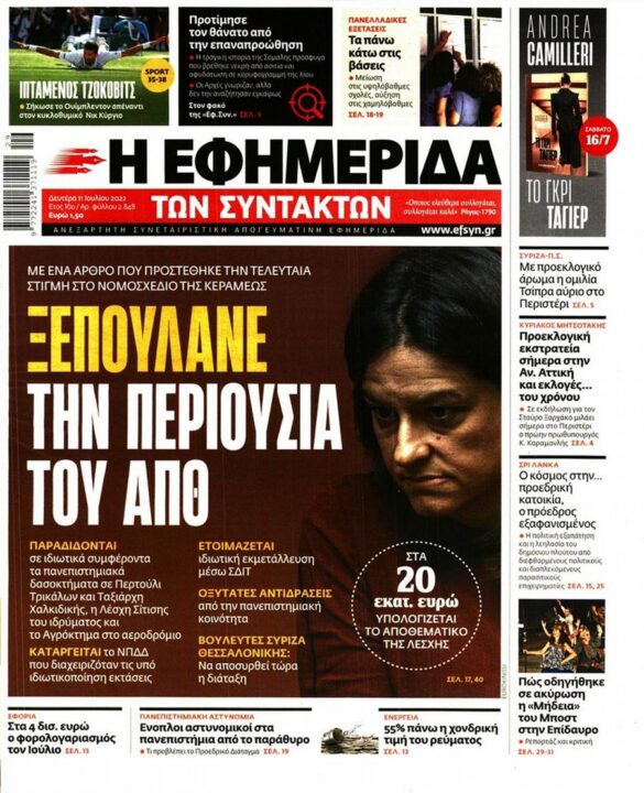 Τα πολιτικά πρωτοσέλιδα της ημέρας(11/07)
