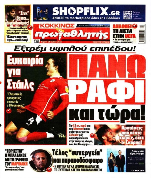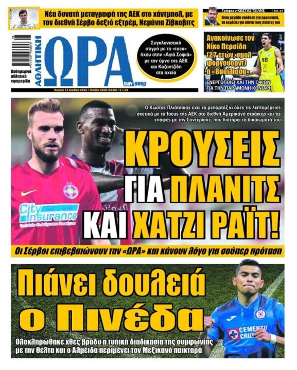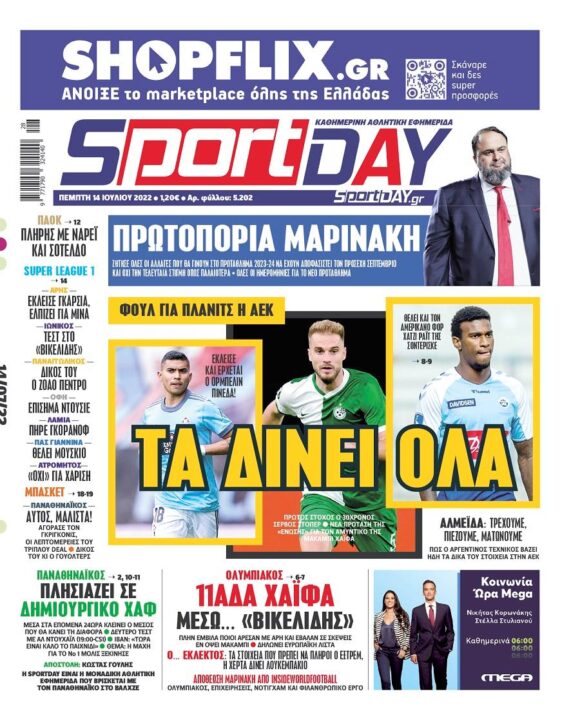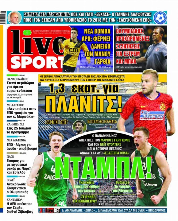 Τα αθλητικά πρωτοσέλιδα της ημέρας(14/07)