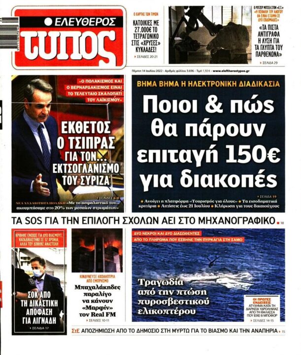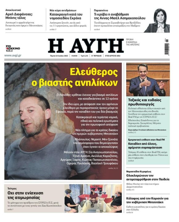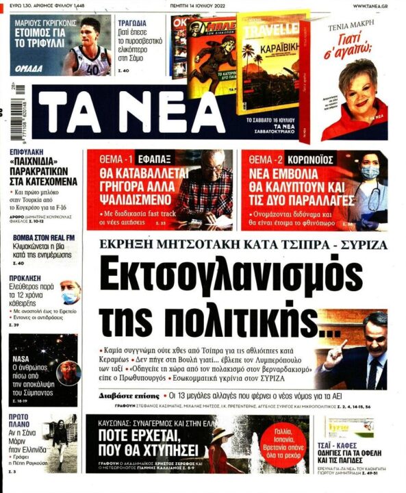 Τα πολιτικά πρωτοσέλιδα της ημέρας(14/07)